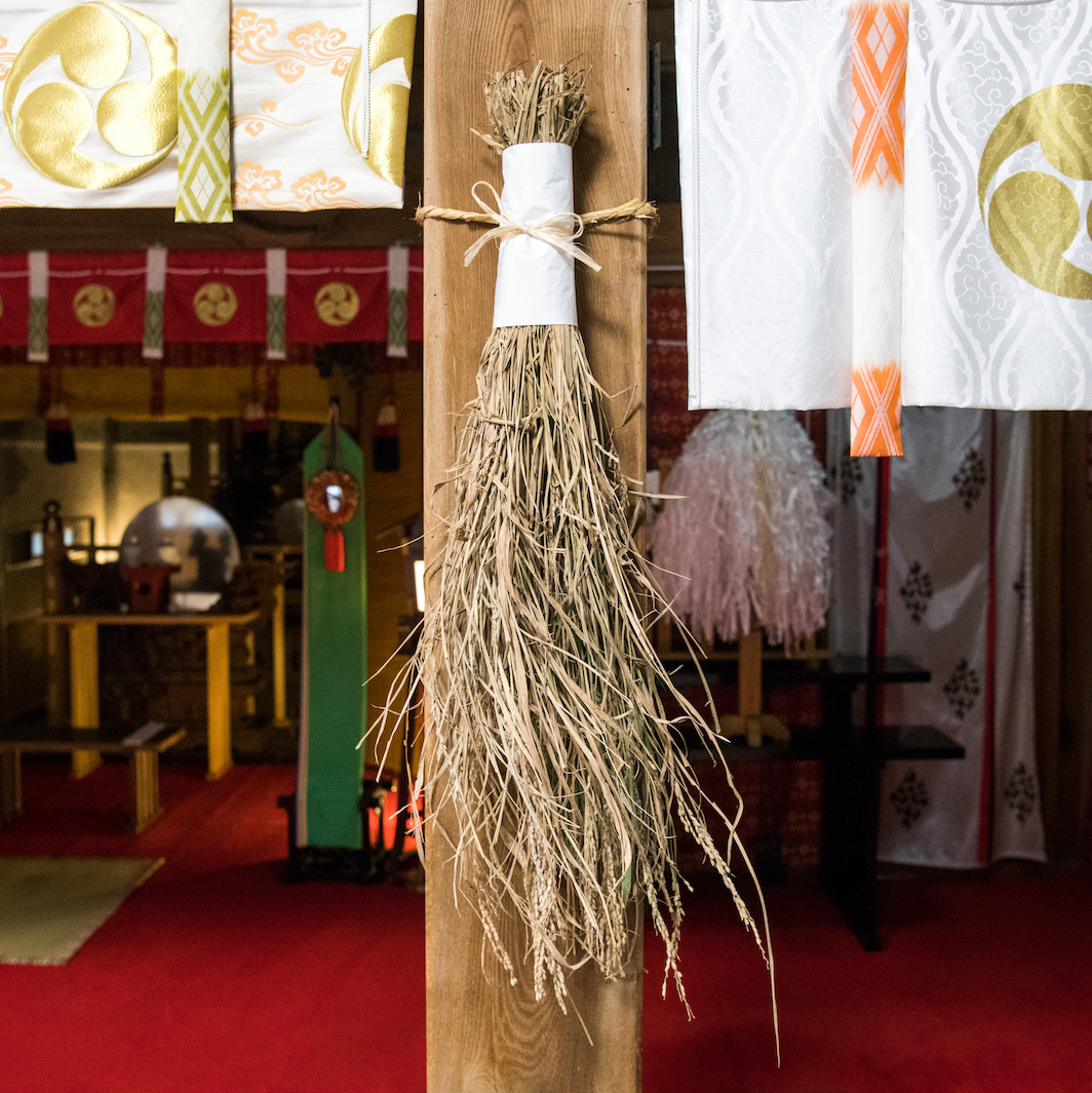 また、稲穂を麻で束ねて「懸税(かけちから)」を奉製し、社殿の柱などに結び付けます。