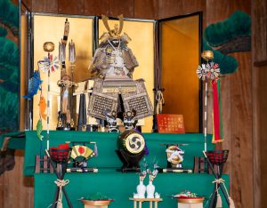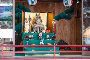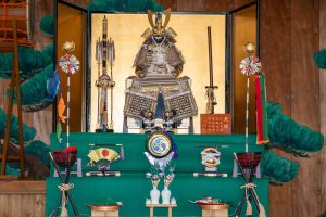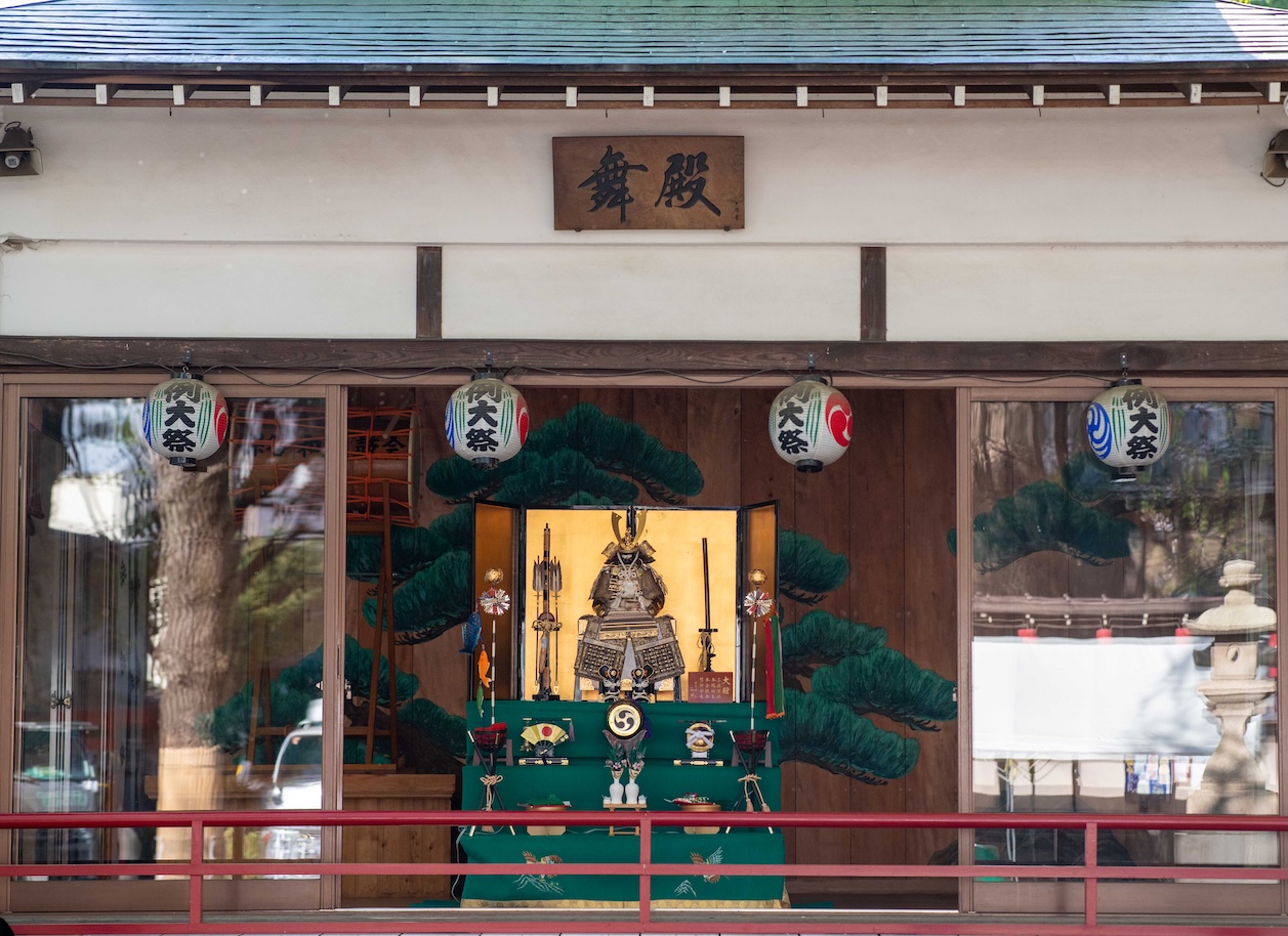 田無神社舞殿では、4月8日(水)から5月6日(水)までの期間、男の子の健やかな成長と健康を願い、五月人形をお飾りいたします。
